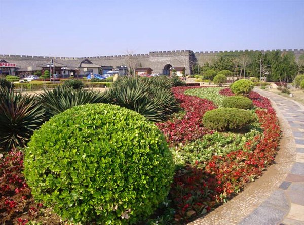 大葉黃楊葉色光亮,嫩葉鮮綠,極耐修剪,是庭院中常見綠籬樹種,可經(jīng)整形環(huán)植門旁道邊,或作花壇中心栽植,也可叢植草地邊緣或列植于園路兩旁。大葉黃楊長勢強健,若加以修剪成型,更適合用于規(guī)則式對稱配植。園林中常將其修剪成圓球形或半球形,與紅葉石楠球、紅葉小檗球搭配種植于道路兩旁,效果更佳。