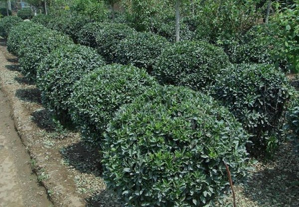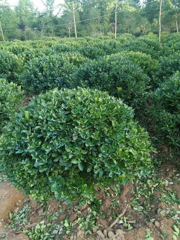 大葉黃楊球是由高度在50公分以上的大葉黃楊小苗,在生長期間不斷修剪而成的。大葉黃楊球四季常綠,葉片光亮,分枝多,長勢很快, 一般2年左右就會長到1米左右,極耐修剪整形,在苗木綠化種植中可以修剪成各種形狀的造型。園林中常與紅葉石楠球,紅葉小檗球、金葉女貞球、金森女貞球等相間搭配種植。其中在城市道路兩旁常見它的身影。