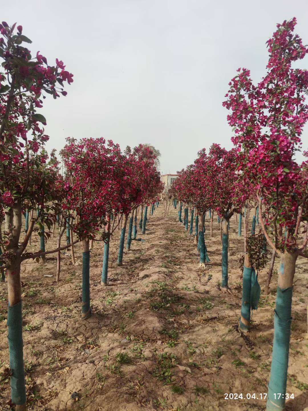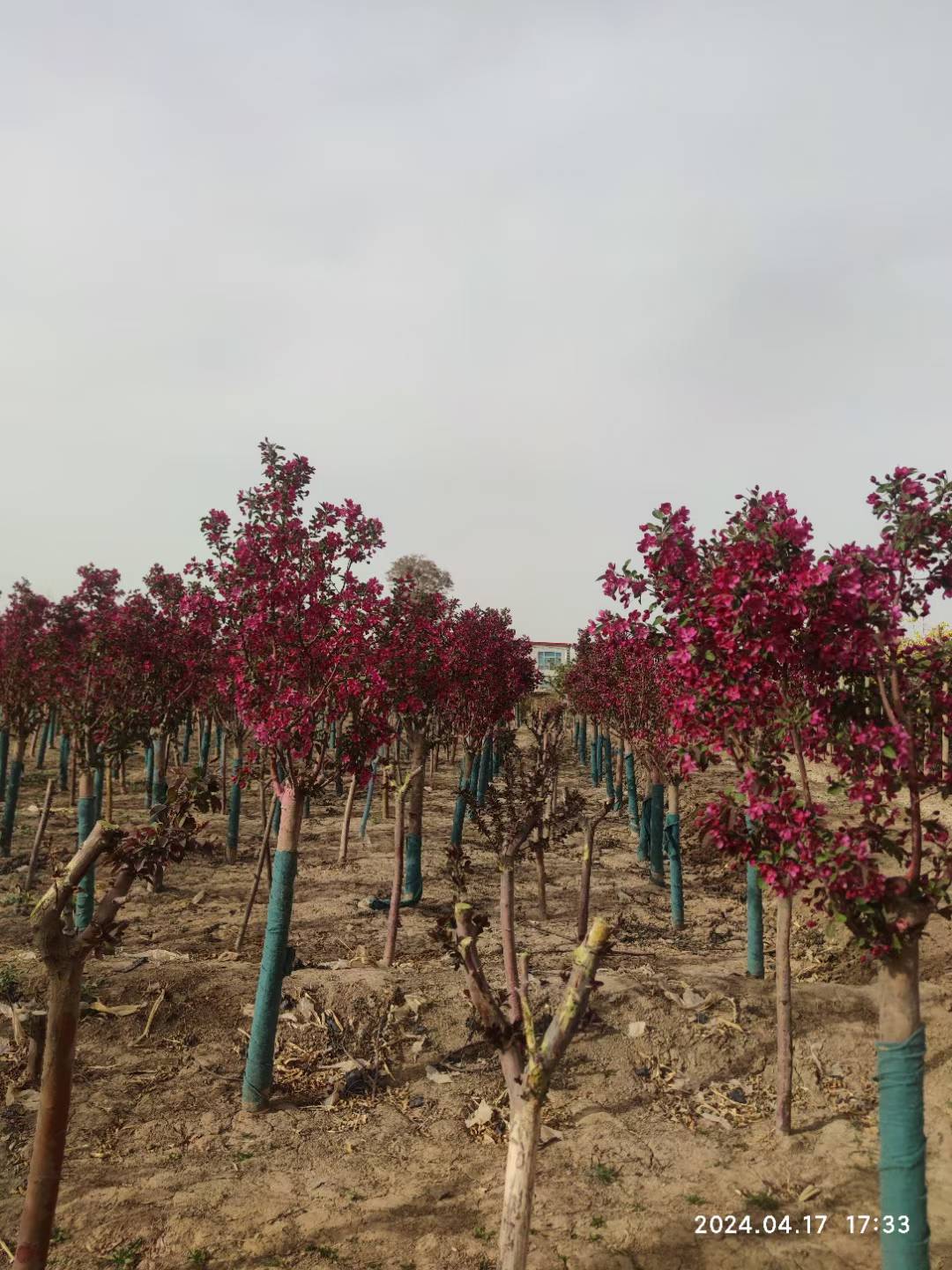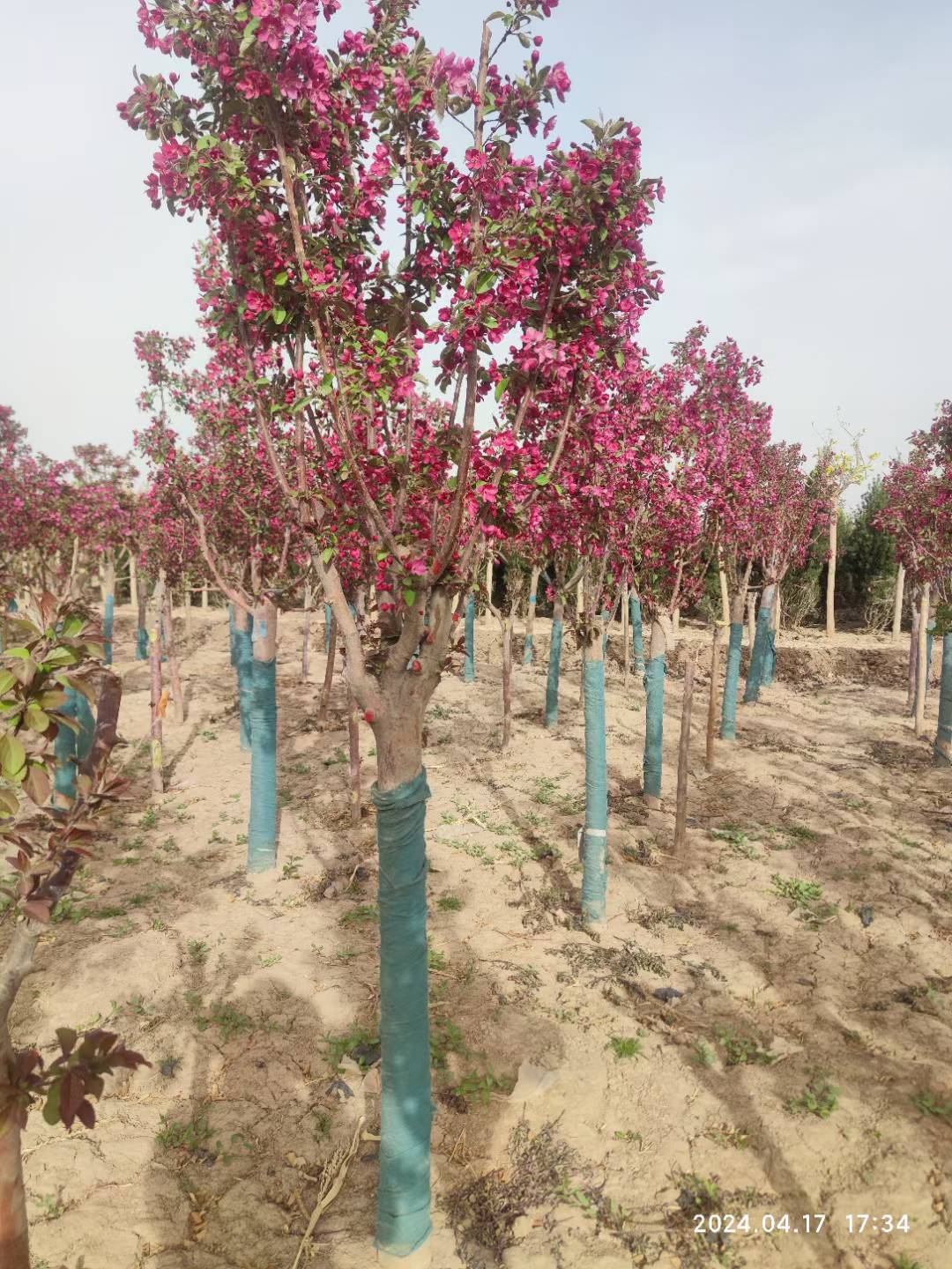 河北百盛苗木基地,大量批發假植紅寶石海棠樹苗,價格便宜,樹型好,移栽成活率高。